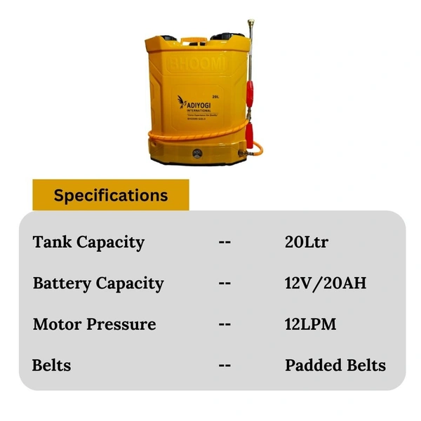 Transform your farming and gardening experience with the Bhoomi Gold Double Motor Battery Sprayer by Adiyogi. Designed for efficiency and durability, this powerful sprayer is a must-have for farmers, landscapers, and gardening enthusiasts. Whether you're tackling weeding, pest control, or plant feeding, the Bhoomi Gold delivers professional-grade results every time.