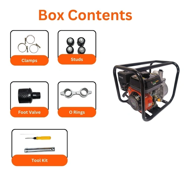Introducing the powerful Garuda Water Pump20-170P, a high-performance water pump designed for efficiency and durability. Crafted by Adiyogi, this machine is equipped with a robust 4-stroke petrol engine delivering an impressive 6.5HP of power and a 212CC displacement. Whether you're drawing water from a pond, well, or tank, this water pump is built to handle demanding tasks with ease.