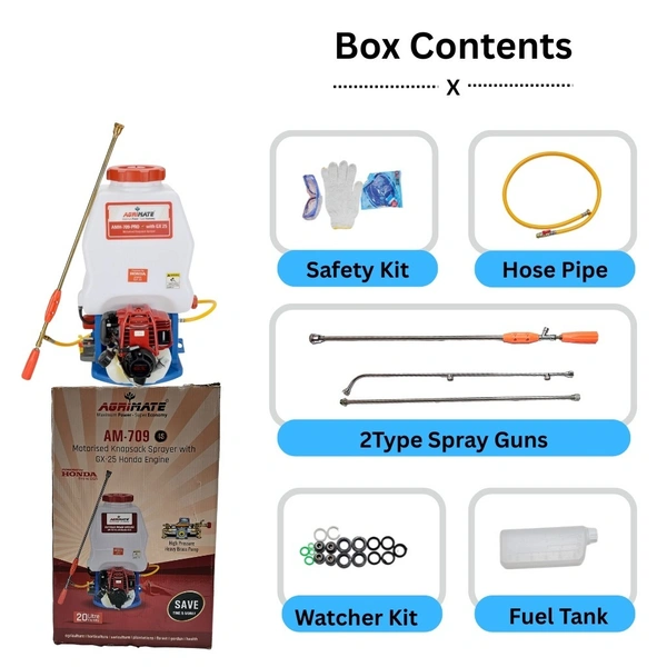 Introducing the Agrimate Gx25 4-Stroke Power Sprayer, a premium solution for all your agricultural spraying needs. Powered by the renowned Honda GX25 Original Engine, this sprayer combines reliability, efficiency, and exceptional performance to help you get your tasks done faster and more effectively.