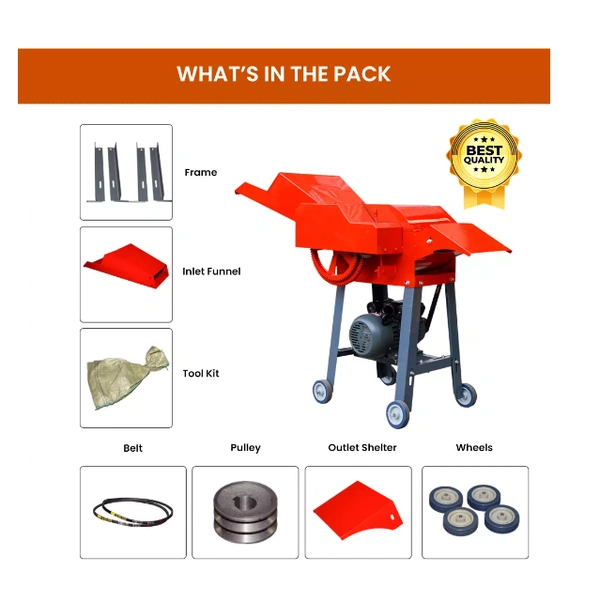 Stop letting your crop residues and farm waste go to waste. The Agripro 3HP chaff cutter transforms leftover materials into nutritious livestock feed in no time. With its powerful 3HP motor and 4 high-quality blades, it can handle up to 600 kg per hour - all while using just 1.8 kw/h of electricity.
