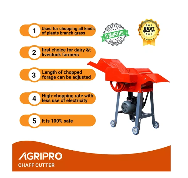 Livestock farmers will love how the Agripro 3HP chaff cutter boosts their farm's productivity and profitability. By converting waste into a valuable resource for your animals, you'll save money on purchased feed and reduce your environmental impact.