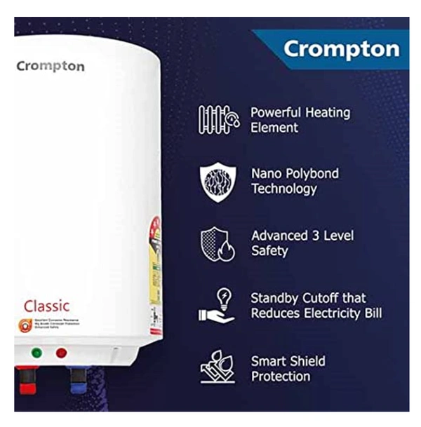 Crompton's energy efficient storage water heater with corrosion resistant body